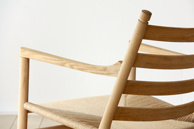 ソファの背の細いスポークのデザインはスタイリッシュで美しいので壁に付けず、空間の中心に置きたくなってしまいます。