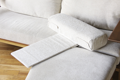 しっかり奥までかけて背クッションに身を預けると、フェザー入っておりソフトな掛け心地で寛ぐ事も出来ます。